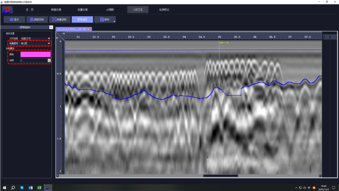 AI辅助自动识别出层位厚度并画出厚度指导与参考层位线后,可在人机交互界面最后由专家自主决策是否沿用或修改AI自动识别的厚度层位线。