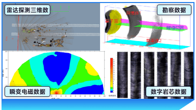 雷达探测三维数据、地震波探测三维数、瞬变电磁数据、数字岩芯数据