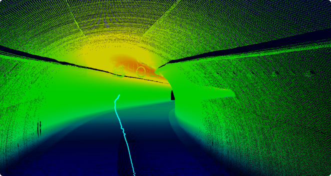 搭载的点云设备通过多时相点云比对,实现变形与收敛监测(误差 ±1cm),自动提取断面数据掌握拱顶下沉、侧墙位移等结构变化;还能基于点云计算体积与断面,对隧道超欠挖、平整度评估挖方量、分析。