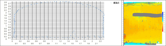 范围:传统检测7条测线,测线间距大,三维检测可全覆盖