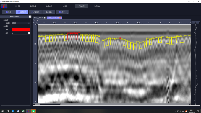 AI辅助自动识别出钢筋目标并画出钢筋指导与参考识别框后,可在人机交互界面最后由专家自主决策是否沿用或修改钢筋的AI自动识别结果。